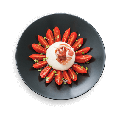 A mix of elvety burrata cheese served over ripe tomatoes, arugula, and basil, drizzled with extra virgin olive oil.